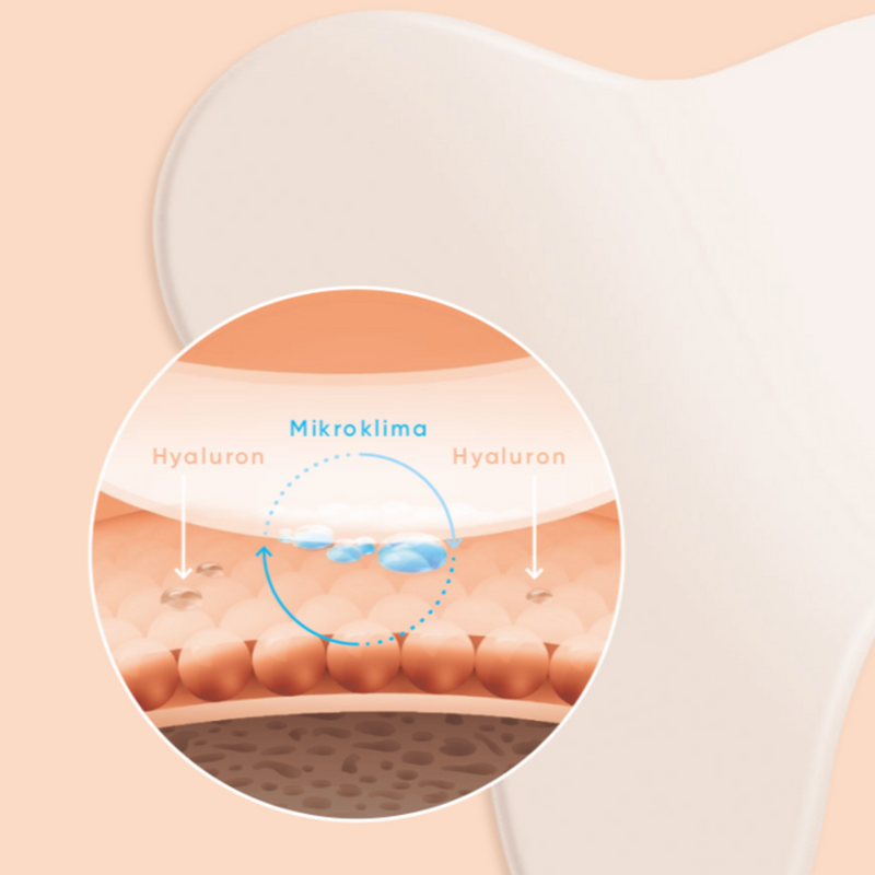Smooth skin in one hour! We can promise you that, because our Pads with hyaluronic acid, aloe vera, vitamin C or ectoin have a very special function: It is the interaction of material, active ingredient and microclimate that leads to dermatologically proven wrinkle reduction - quickly, comfortably and sustainably.