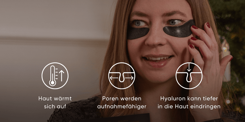 Since the upper layer completely gas and air impermeable is created by the warmth between skin and Pad a microclimateThis makes the skin particularly receptive for the Hyaluron and saves the Moisture. This creates a fresh and plumped-up effect.